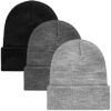 Cooraby 3 Pack Unisex Winter Skull Cap Beanies Knitted Cuff Hats Caps Roll-up Edge Beanie Hats for Men Women Outdoors