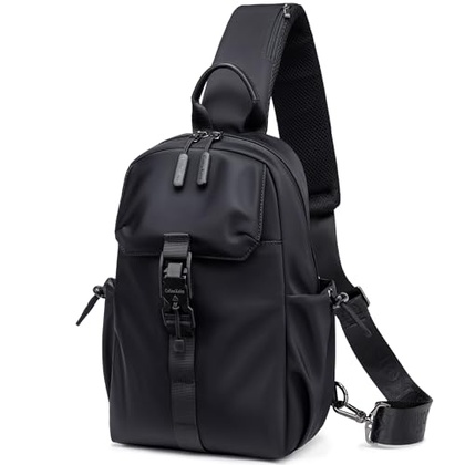 Colins Keirs Large Travel Sling Bag for Men, Waterproof Crossbody Chest Bag for Leisure Vacation, Black Shoulder Bag Every Day