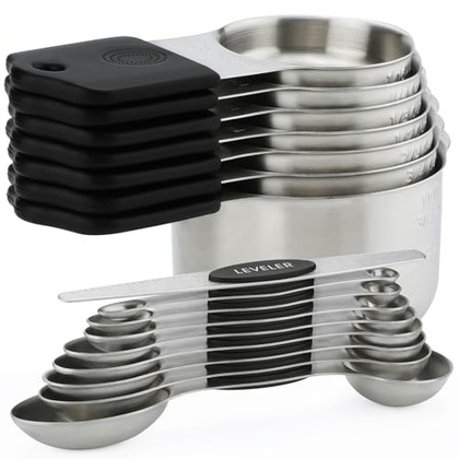 • Magnetic Measuring Cups and Spoons Set Crafted from premium stainless steel with a single metal construction, Designed to resist rust and bending, this durable set is an essential, stylish addition to your kitchen, ensuring longevity.