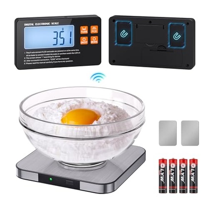 - 【2025 New Upgraded Kitchen Scale & Independent Display】The upgraded food scale adopts an innovative design that separates the kitchen scale and the display, utilizing wireless connection technology to connect automatically after powering on, so you can clearly see the numbers on the display without worrying about it being covered. The independent display design also comes with 4 ways to place it: flat, stand tilted on the countertop, magnetic on the refrigerator, adhesive on the wall, there is always a way you like to place it.