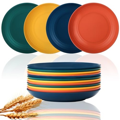 • Lazycorner Dinner Plates Unbreakable Wheat Straw Plates Kids Plate Set of 12 Alternative for Plastic Plates Reusable Plate for Kitchen Dishwasher Safe (10 Inches-4 Colors)
