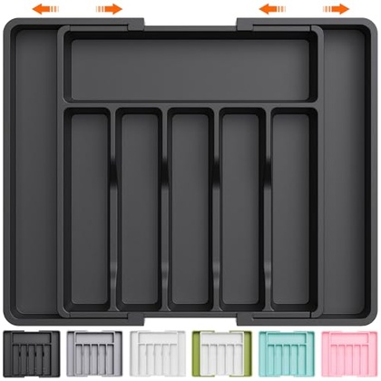 • Large Capacity: Organize your kitchen drawer and make more space with this silverware organizer. Comes with two expandable panels on the left and right to store more silverware, cutlery, and kitchen utensils.