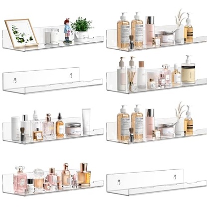 - Sturdy Floating Shelves: Made of thick acrylic, the wall shelf is sturdy and durable. It can be securely installed on the wall using screws and can load-bearing 2.7 pounds. The raised design can prevent items from falling off