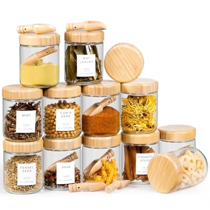- COMES WITH 12 SPOONS — 12 wooden spoons for each of the 12 jars to make it even more convenient for daily use.