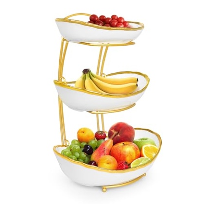 - 【Perfect Match For Kitchen Countertops】Our 3 tier fruit bowl can not only be used to store fruits such as bananas and avocados, but also can be used to place candies, snacks, desserts, cupcakes, party tableware, etc. It is used as a daily storage tool to keep your kitchen counter clean and tidy