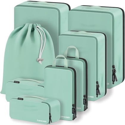 Compression Packing Cubes, Lumesner 8 Set Travel Packing Cubes for Carry on Suitcases, Compression Suitcase Organizers Bag Set & Travel Cubes (8-piece, Green)