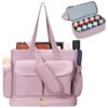 Skycase Work Tote Bag for Women – Large Laptop Tote Handbag – Lunch Bag with 12 Compartments – Crossbody Shoulder Weekender Bag for Travel, School, Casual, Bible, Nurse, Teacher – Pink
