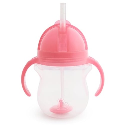 Munchkin Any Angle Sippy Cup for Toddlers, Spill Proof Weighted Straw Cup with Transition Handles for Babies 6 Months and Up, 7 Ounce, Pink