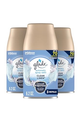 • One 3 count pack of Glade Automatic Spray Air Freshener Refill, Clean Linen scent, allows you to enjoy the home fragrance of crisp air, fresh laundry, and lily of the valley