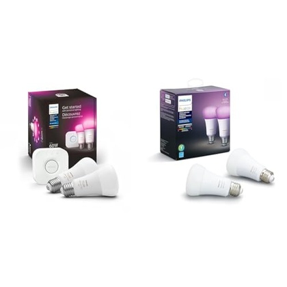- Product 1: WHAT’S IN THE BOX – Includes one Hue Bridge and two Hue White and Color Ambiance smart, color changing 60W / 9.5W A19 light bulbs suitable for most fixtures; perfect for decorative and general lighting anywhere in your home