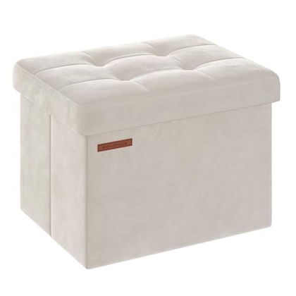 SONGMICS Storage Ottoman, Foldable Small Ottoman Foot Rest, 12.2 x 16.1 Inches Foot Stool, OAD up to 286 lb, for Living Room, Bedroom, Dorm, Cream White ULSF200W01
