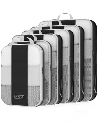 - Maximize Packing Efficiency – Make every inch of your luggage count! These compression cubes work like a mini vacuum sealer, using an extra outer zipper to reduce bulk and create more space. Pack more clothes without sacrificing options—your favorite outfits, now travel-ready.