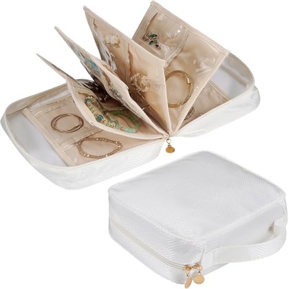- PORTABLE & COMPACT FOR SHORT TRIPS- This travel jewelry organizer case measures 10″x8″x2.5″, fitting effortlessly into handbags, backpacks, or suitcases. Its lightweight, slim design makes it ideal for weekend getaways or business trips, while the secure zipper closure ensures jewelry stays intact and never spills during transit