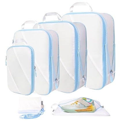 - 【Match Your Luggage】Comes with 7 travel packing cubes for different kinds of luggage. You can place them any way you like. For example: 1X backpack bag for dirty clothes, XL&L large packing cubes for coat,skirts and trousers, M&S packing cubes for underwear socks and t-shirts.Shoe Bag for travel.