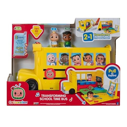 - 2-In-1 SCHOOL BUS: The CoComelon Transforming School Time Bus is a unique 2-in-1 bus that transforms into a school