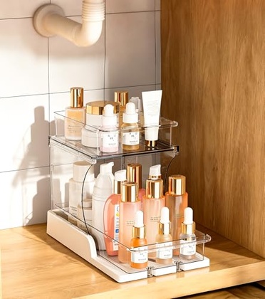 - 2-Tier Sliding Design for Easy Access: This dual-layer organizer features a smooth sliding top drawer that lets you easily reach items stored in the back without bending or moving the entire rack. The clear acrylic design blends beautifully with any home décor while keeping your essentials visible and organized.