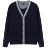 Hudson Wellesley 100% Merino Wool Sweater Cardigan for Men with Buttons Contrast Placket Two Pockets Casual V Neck Long Sleeve Knit Tops Night Sky Size S