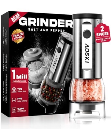 - More than just a kitchen tool, AOSKI versatile grinder set fits every moment—family dinners, BBQ parties, outdoor picnics, or even restaurant kitchens. With battery power, it’s always ready without charging delays. Its elegant stainless design and gift-ready packaging also make it a perfect present for housewarmings, weddings, holidays, or anyone who loves cooking