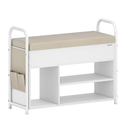 VASAGLE Shoe Bench, Shoe Rack, Entryway Furniture, Inner Storage Under The Lid, PU Pockets, Convenient Handles, for Entryway, Living Room, Bedroom, Cloud White and Cuppuccino Beige ULSB052W01