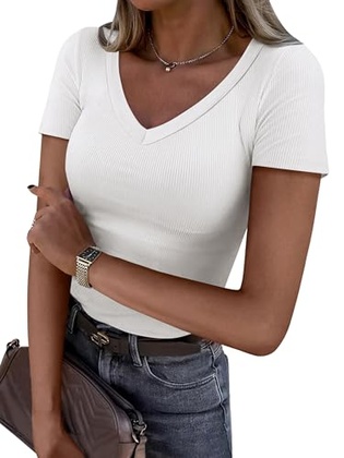 - Features – Women’s summer T shirt,V neck,short sleeves.This women’s summer T shirt top perfect for daily wear, work, office, business.