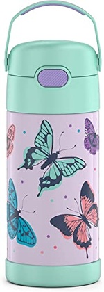 THERMOS FUNTAINER Water Bottle with Straw – 12 Ounce – Kids Stainless Steel Vacuum Insulated Water Bottle with Lid, Butterfly Frenzy