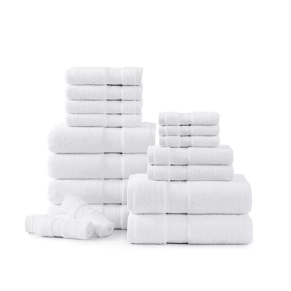 • Each 18-Piece White Towel Set includes : 6 Bath Towels – 28″ x 54″ , 6 Hand Towels – 16″ x 28″ and 6 Wash Cloths – 13″ x 13″. Crafted from premium Cotton, each bath towel, hand towel, and wash towel promises to be soft on your skin to keep you warm and dry after you step out of the shower.