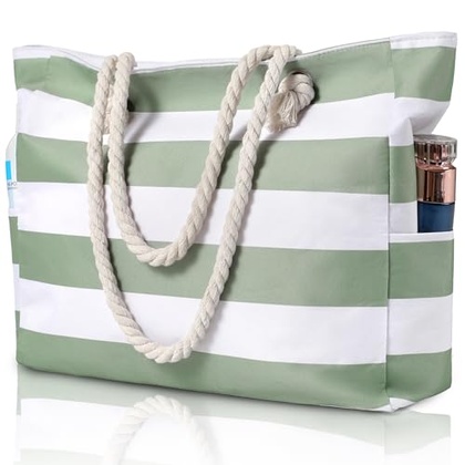Beach Bag for Women – Large Beach Tote Bag, Waterproof Sandproof Beach Bag with Zipper, Large Swim Pool Beach Tote, Green