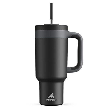 POWCAN 40 oz Tumbler with Handle, 2-in-1 Straw and Sip Lid, Leakproof, Dishwasher Safe, Insulated Stainless Steel Travel Coffee Mug, Keeps Cold for 34 Hours, Fits in Car Cup Holder (Midnight)