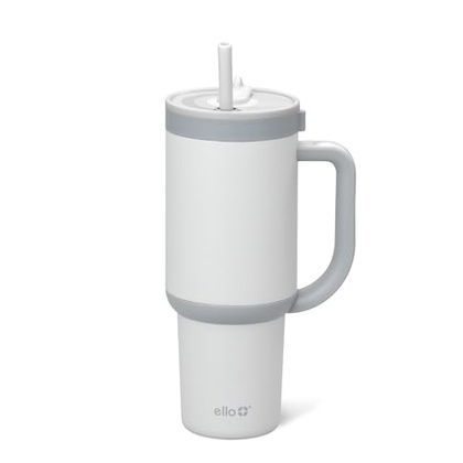 Ello Oasis 30 oz Tumbler with Handle & Retracting Straw | Reusable Insulated Stainless Steel Cup 100% Leakproof, Gifts for Teens Women Men | Keeps cold for 20 Hours, Cup Holder Friendly, Grayscale