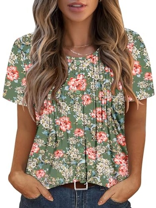 - Features: Summer Short Sleeve Tops for Women O Neck Top with a Bit flared Style, Fake Buttons Design,Solid Color and Floral Print, Lovely, Graceful and Comfortable