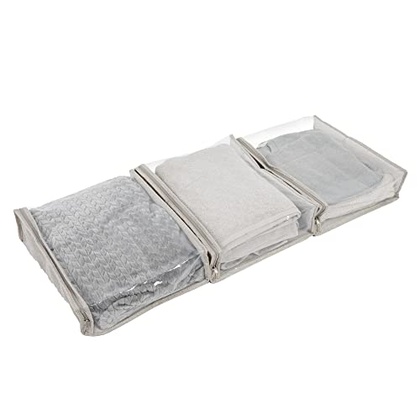 Household Essentials Under Bed Zippered Sweater Storage Bags with Clear Vision Panel, Set of 3, Silver,Gray