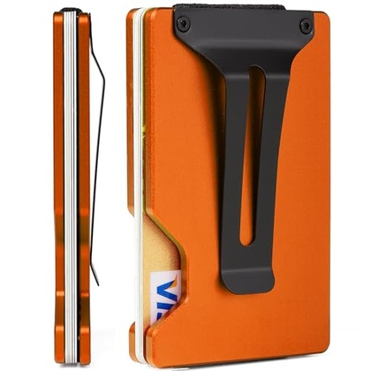 • FIRDIKT Carbon Fiber Minimalist Wallet for Men Credit Card Holder Money Clip & Cash Strap Slim RFID Mens Wallets(Matte Orange)