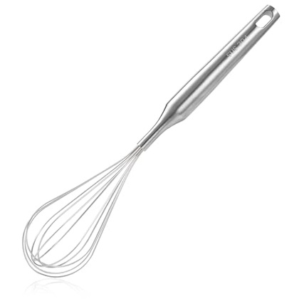 - FULL 304 STAINLESS STELL STRUCTURE,This whisk is entirely made of food-grade 304 stainless steel, resistant to breakage and rust. The thick, tangle-free wires with ample surface area for efficient mixing. The springy wires and wide gaps incorporate more air, creating delicate and fluffy results while saving time and effort.