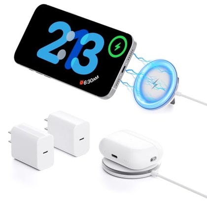 - 【Customized for Phone17/16/15/14/13/12 Series】Our 2 pack iPhone wireless charger uses the latest system, easy to connect and more convenient for wireless charging. Especially suitable for iPhone Air/ iPhone17/iPhone 17 Pro/iPhone 17 Pro Max/ iPhone 16/15/14,16/15/14 Pro,16/15/14 Pro Max,16/15/14 Plus; iPhone 13, 13 Pro,13 Pro Max,13 Mini;iPhone 12, 12 Pro, 12 Pro Max, 12 Mini, and AirPods Pro 4,3,2, iPhone 8 above models with Mag-Safe case also supports magnetic charging