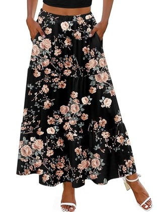 - [Occasions]: This spring needs a cute casual skirt! This floral skirt is a must-have in your wardrobe. This tiered ruffle skirt with pockets is suitable for summer beach, casual wear, wedding party, dating, church, etc, perfect maxi skirt for spring, summer, fall, or winter.